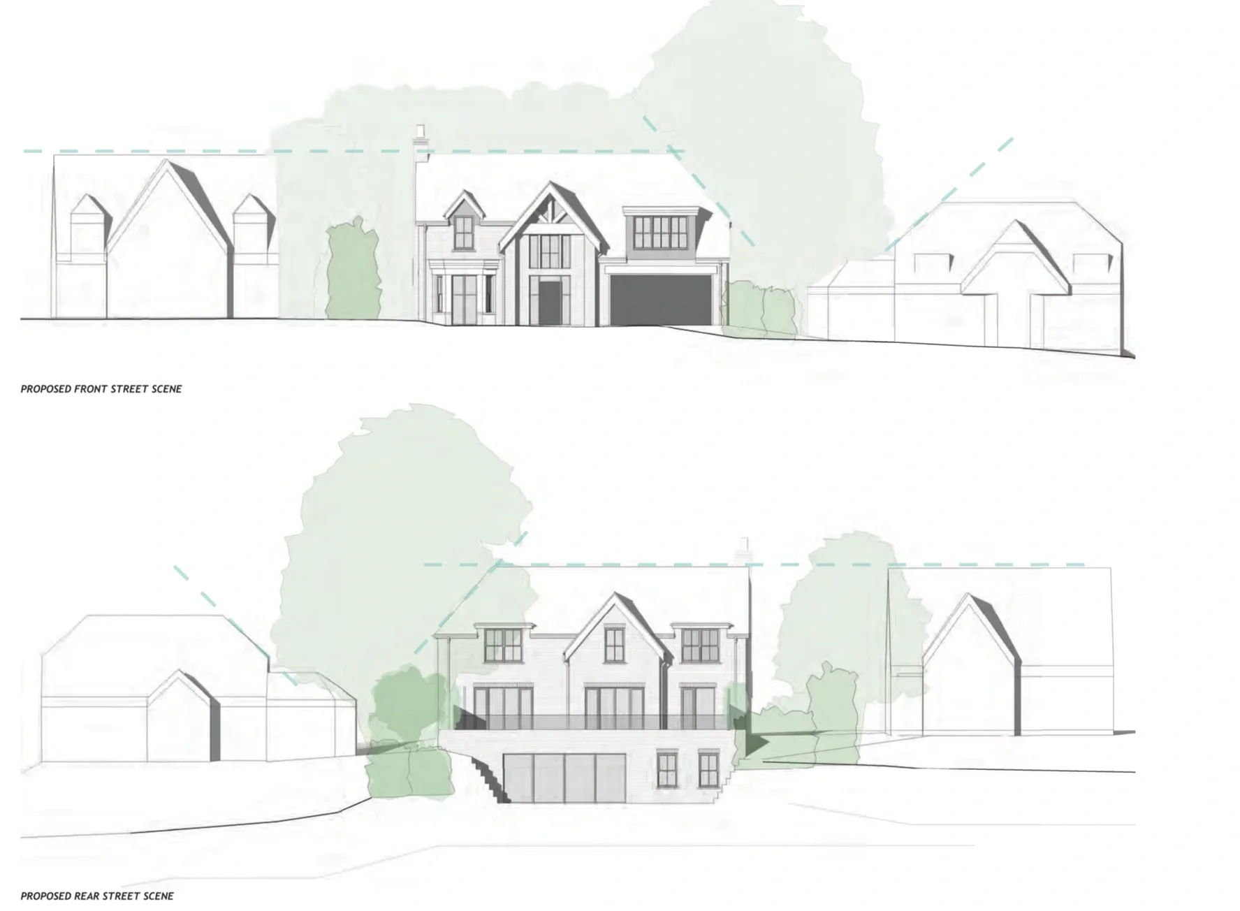 Design of a new three-storey dwelling constructed on a steeply sloping site following demolition of the existing house. The scheme incorporates a reinforced concrete basement formed into the slope, with load-bearing masonry walls and a combination of steel beams and posts at upper levels to achieve open-plan living areas and efficient structural performance.